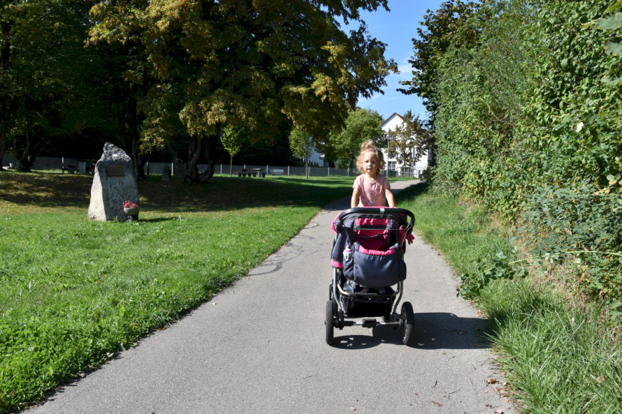 Дорожка, которую вы видите на фотографии это велосипедная дорожка, она является частью велосипедного маршрута “Via Julia”, что соединяет Дунай и австрийский Зальцбург. То есть общая длина порядка 330км. Основательная такая велосипедная дорожка. Проложена же она на том месте, где раньше проходила древняя римская дорога. Так что наш дом стоит в некотором роде на древнем римском пути.