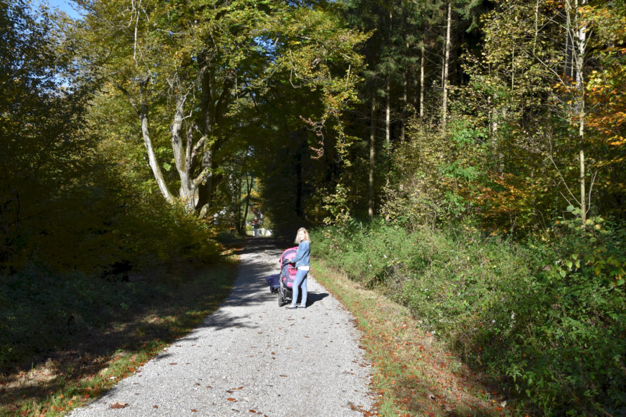 Ну а если продолжить движение дальше в сторону Аугсбурга, то велодорожка идет прямо через лес. Очень здорово ехать на велосипеде через этот зеленый тунель, который окружает тебя со всех сторон.