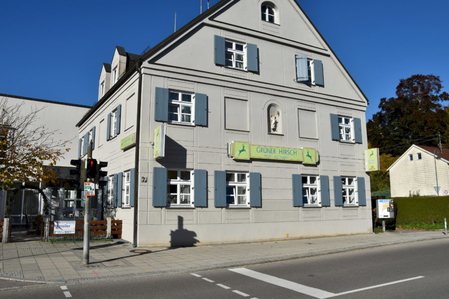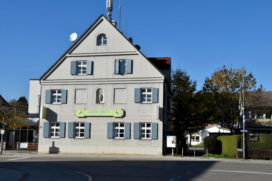 На том месте, где дорога, ведущая от нашего дома, сливается с главной дорогой стоит баварский ресторан/биргартен - “Зеленый олень”.