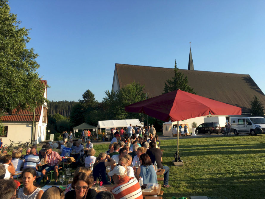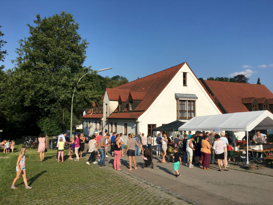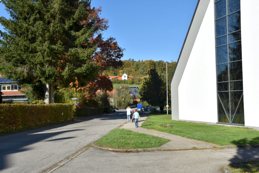 В самой церкви мы были только один раз на праздник “Латерненфест” в честь святого Мартина, когда дети ходят с огоньками. Но перед тем, как начать шествие с огнями и начать есть булки с сосисками, в церкви рассказывается история святого Мартина и люди немножко поют. Ну такая скажем мини-служба. Церковь внутри выглядит чуть более современно, чем ожидаешь. Например, во время пения на огромном экране показывается текст песни, чтобы люди, кто не знает слов не терялись.
