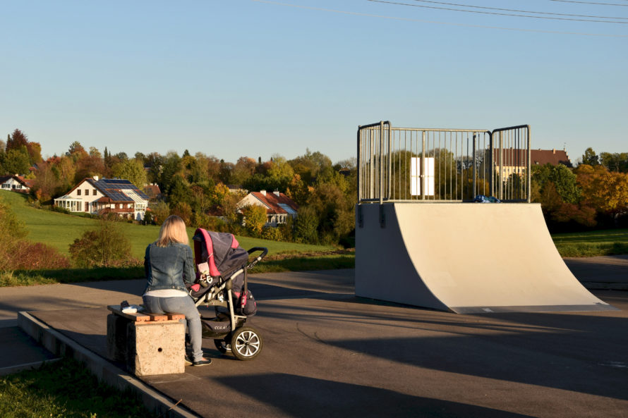 Для детей постарше здесь площадка для скейтбордистов и баскетбола