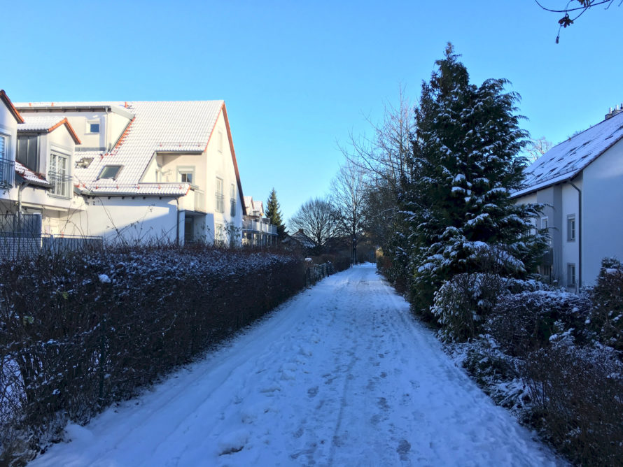 Наверное вы обратили внимание, что все фотографии сделаны либо осенью, либо летом, ну или весной. Я вот тоже обратил внимание. Действительно, как-то зима не располагает к тому, чтобы ходить по улицам и фотографировать, да и темнеет рано. Но все-таки картина была бы неполная без зимних фотографий, тем более что скоро Новый год. Вот он зимний Aystetten.