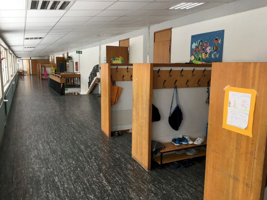 Ну и рядом с пожарной станцией находится школа. Школа эта только начальная, то есть с 1 по 4 класс. А ребята постарше ездят на велосипеде в соседний городок Neusäß (тот самый куда я езжу на велосипеде на вокзал) или на автобусе в Аугсбург.