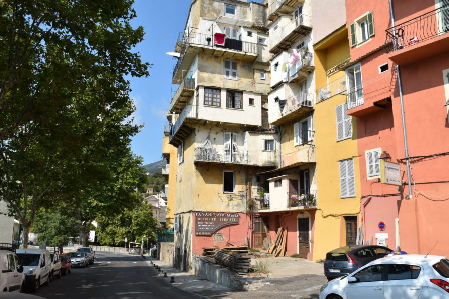 До места назначения было не так уж и близко. Я бы даже сказал, скорее далеко. Около 200км через весь остров, по горным дорогам, то есть ехать часа три с половиной. Ну а поскольку, обратно возвращаться мы не планировали, то уезжать просто так и не посмотреть Бастию (город к которому мы причалили), было как-то обидно. Так что было решено найти место для парковки, погулять по Бастии, ну и позавтракать перед долгой дорогой.