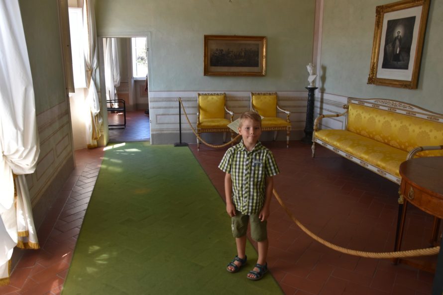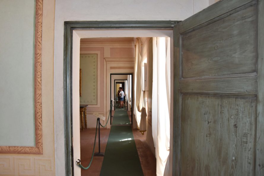 Вилла внутри очень по своей структуре похожа на многие замки, что мы посещали ранее (ну разве что масштабы поменьше). Как-то неуютно раньше делали планировку. Длинный коридор по периметру всего помещения и открытые комнаты.