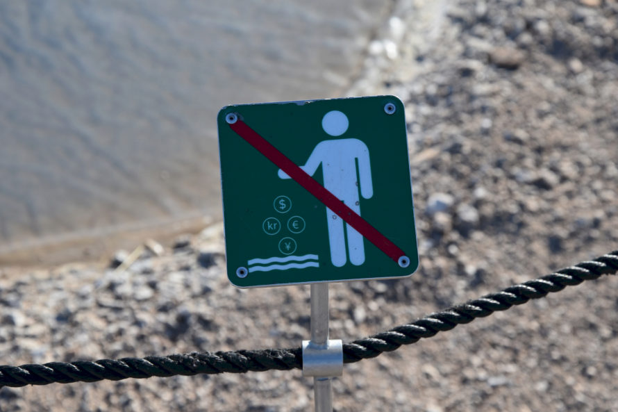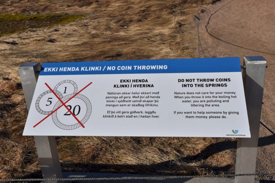 Знак, призывающий не бросать в гейзер монеты