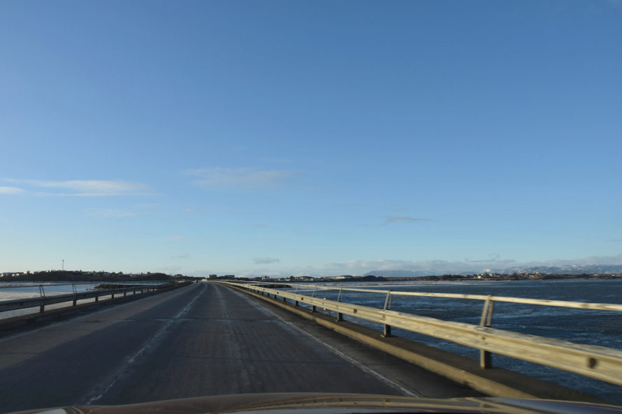 Правда, скажу вам, дорога которую мне показал навигатор Waze была подозрительно короче и лишь когда я увидел впереди кусочки океана, или правильнее сказать Фьордов, я почуял неладное. Навигатор показывал, что я должен ехать достаточно большое расстояние, наверное, в десяток километров по океану. Неладное, поскольку из моего опыта путешествий - это вполне мог оказаться какой-нибудь паром, а это значит, что вполне вероятно, что он и вовсе не ходит в такой “нелюдный сезон” или ходит раз в день. В общем, вся эта полоска маршрута, пролегающая по водной глади, заставила меня понервничать. Ну хорошо, а если не паром, то что? Мост? Но не такой же длины? Бывают, конечно, длинные мосты, но что-то я не припомню никаких упоминаний о таких длинных мостах в Исландии.