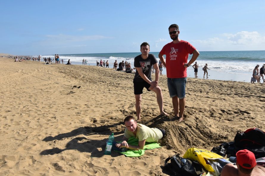 И все бы в нашей прогулке было ничего, кроме как тот факт, что мы были чуть ли не единственными одетыми людьми, что гуляли по этим дюнам. Ну то есть как одетыми… Ну как люди одеваются на пляже, а все остальные имели на себе разве что панамку. Когда же мы вернулись на пляж, а вернулись мы метров на 200 раньше того места, где мы остановились изначально, то были несколько удивлены тем, что все лежаки вокруг и места на песке были усеяны исключительно голыми людьми. Это мы уже потом узнали, что это оказывается один из самых знаменитых местных нудистских пляжей. Вот так вот. Ну фотографий, я по понятным причинам прилагать не буду, пусть эту картину вам дорисует воображение.