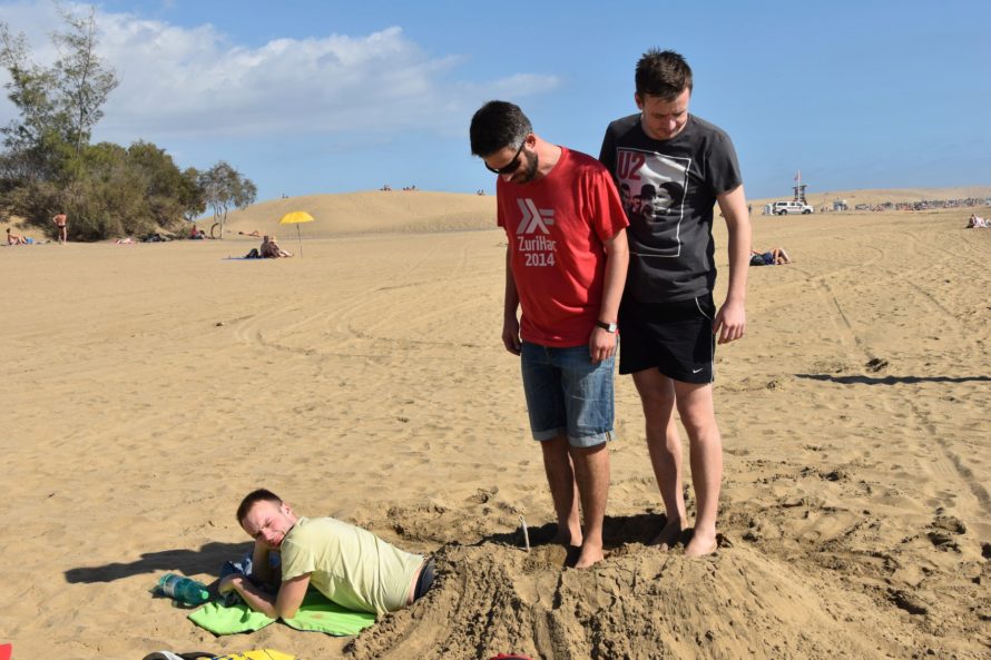 Из развлечений осталось только прогревать косточки после европейской зимы да закапывать друг друга.