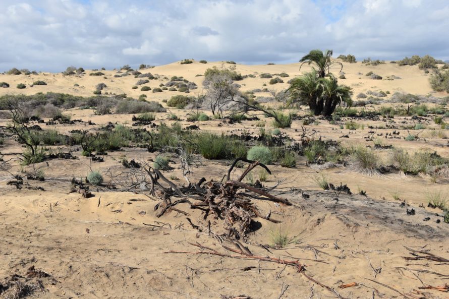 Я сразу вспомнил “наши чилийские дюны”, куда мы частенько ходили гулять. С той лишь разницей, что там кроме песка и не было почти ничего, а здесь было довольно много специфической для пустынь растительности, часть которых тем не менее не пережила палящего солнца и буквально “сгорела дочерна”.