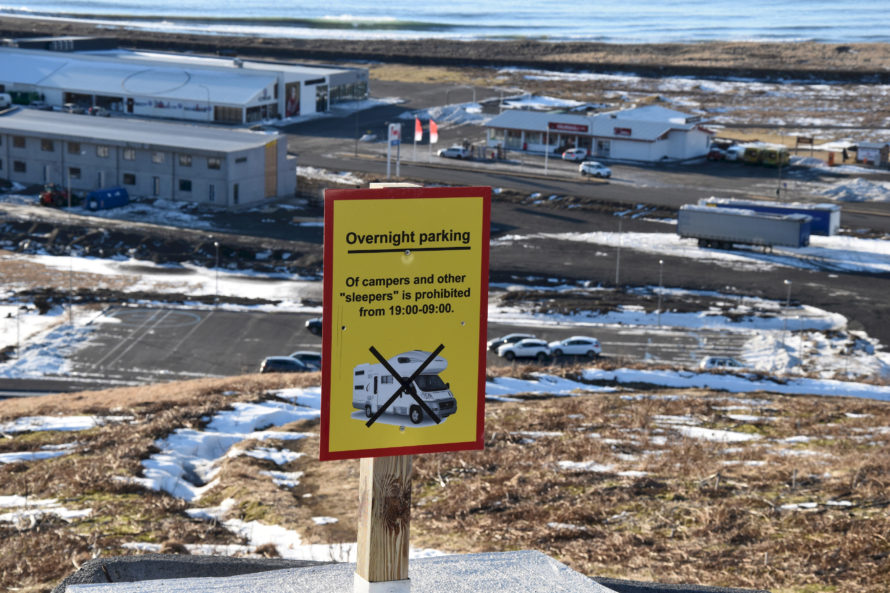 Кстати говоря, здесь я сфотографировал знак, который несколько поясняет сложность нахождения места для ночевки в Исландии.