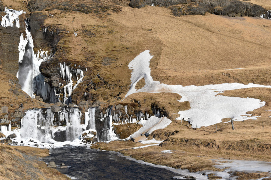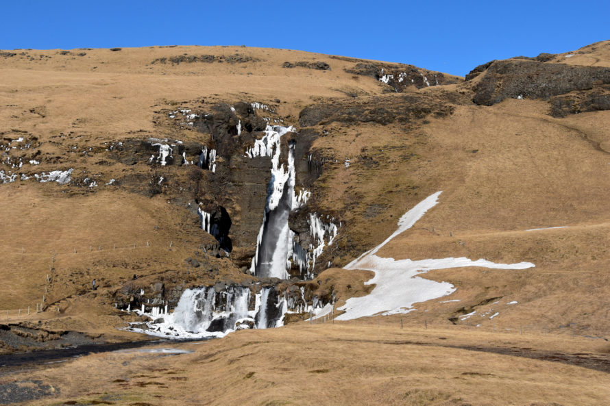 Далее из достопримечательностей мне встречалось что? Нет, не ледники. Ледники были вчера, а сейчас я проезжал в той части, где сосредоточилось огромное количесвто водопадов, включая те, что я посещал с группой после конференции (я писал об этом в истории Исландия: Поездка по югу и Голубая лагуна). Конечно я не стал тратить время на повторное посещение этих водопадов… хотя… технически я подъехал к одному из них, когда проезжал мимо с целью пополнить запасы питьевой воды, но это было дело пары минут.