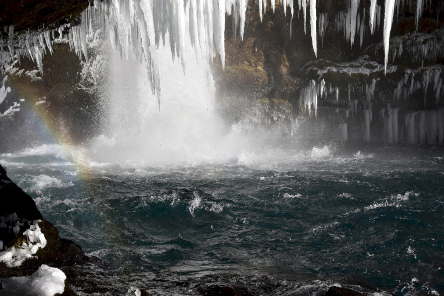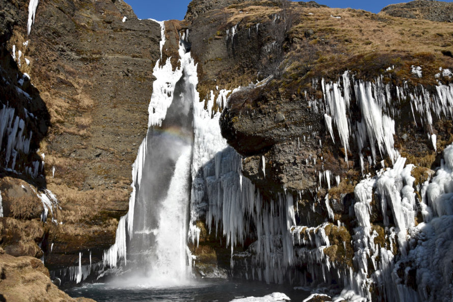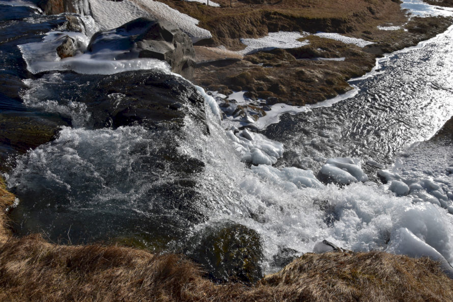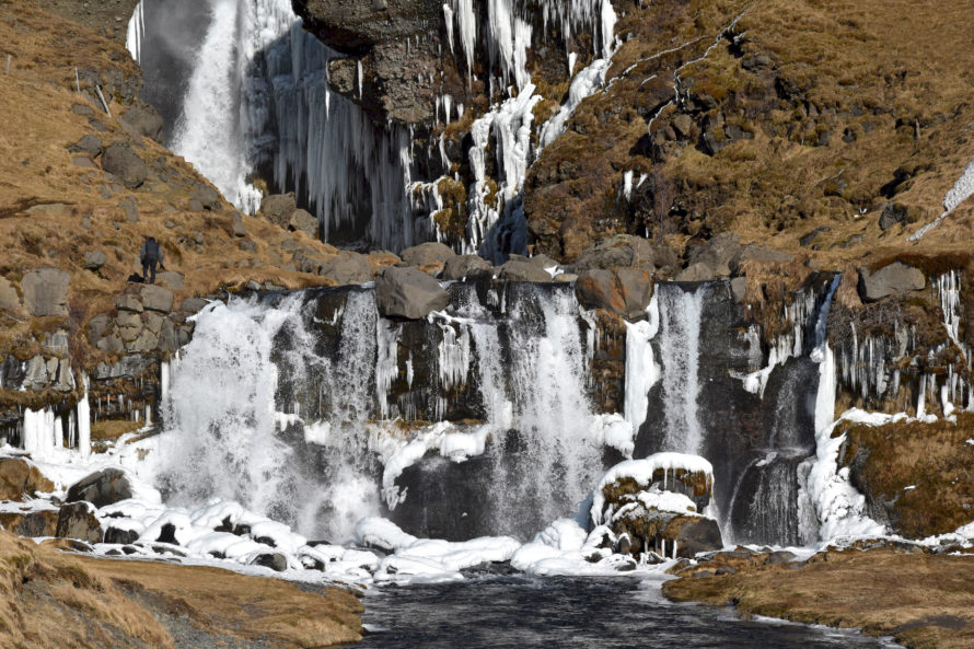 Так вот… водопад этот был более дикий, тут не было табличек вроде “проход воспрещен” и все в таком духе. Была, конечно, тропинка на подходе, но ничего более. И вот один из товарищей решил, что встать на скользкий камень посреди бурлящего потока водопада - это чудесная идея. Надо ли говорить, чем это дело кончилось? Вот он стоит на камне, а вот “бултых” и он во всей своей одежде, с телефоном и бог знает чем еще в карманах уже погрузился в ледянную воду водопада. Ладно хоть ничего себе не сломал во время падения. Зато очень позабавил свою компанию, поскольку они над ним долго хохотали. Ну и понятное дело тут же покинули водопад, пока мокрый бедолага не превратился в ледышку на холодном исландском ветру.