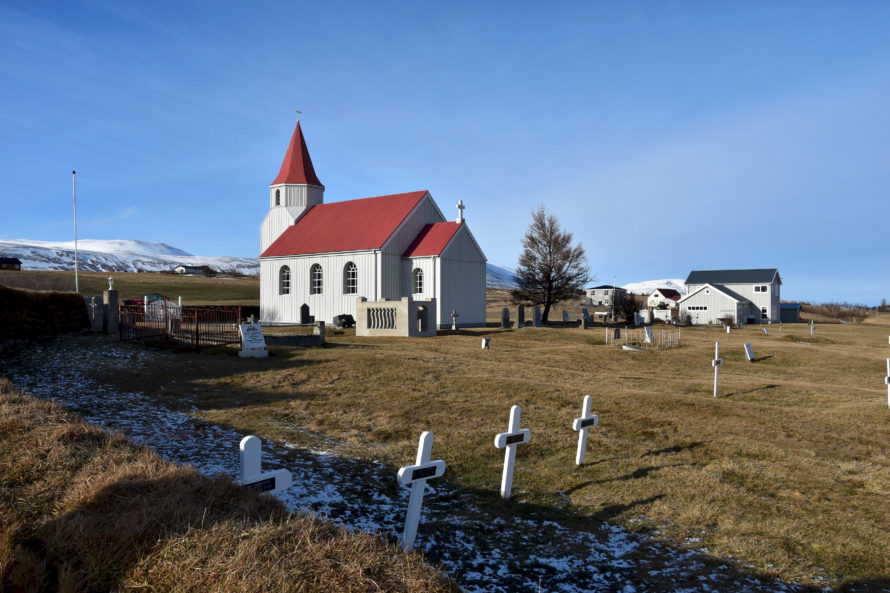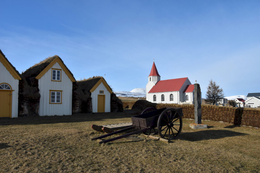Выехав из Hvammstangi, я направился к достопримечательности достойной осмотра в северной части страны. Название этой достопримечательности: Glambæer. Самая большая проблема этой достопримечательности, которая представляет собой несколько симпатичных домиков и церквушку - это название. Вот попробуйте-ка ввести вышеуказанное слово в навигатор.