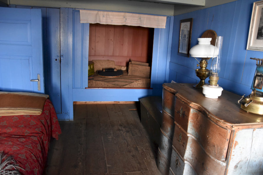 Синяя краска в этих краях была большой редкостью, ее привозили из Дании, и это был такой себе способ “выпендриться” и показать, что ты богатый и успешный человек, раз у тебя стены покрашены в синий цвет.