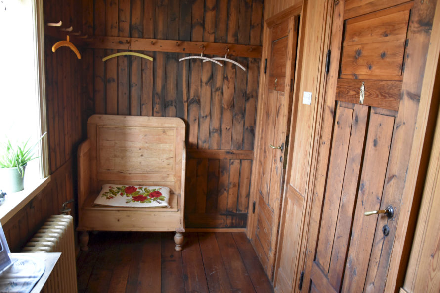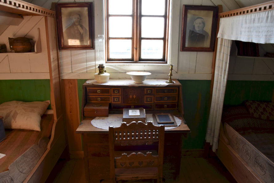 Потом хозяйка рассказала мне, что этот дом привезли из другого места, что он был расположен в 50 километрах отсюда (если я правильно запомнил). Но хозяину он стал не нужен, и он предложил отдать его для музея. На том месте, где дом стоял не было ничего примечательного, и никто из туристов бы туда не поехал, а потому решили просто взять дом и перевезти его сюда в Glambæer.