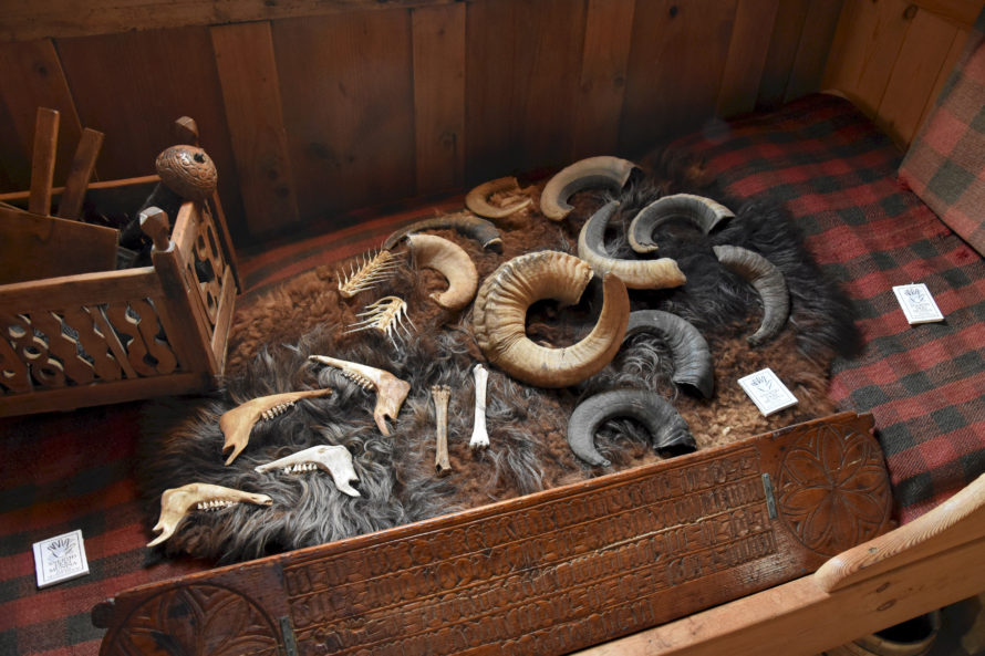 На фотографии выше вы видите рога, кости, куски челюсти, которые лежат на кровати. Как вы думаете, какую задачу прошлых лет решали эти предметы? Это ведь очевидно! Это такие детские игрушки. “Ключница” сказала, что в те времена еще не было изобретено плейстейшена и детям приходилось как-то выкручиваться и находить себе игрушки и развлечения самостоятельно. Вот и играли почему-то костями. Викинги, чего с них взять.